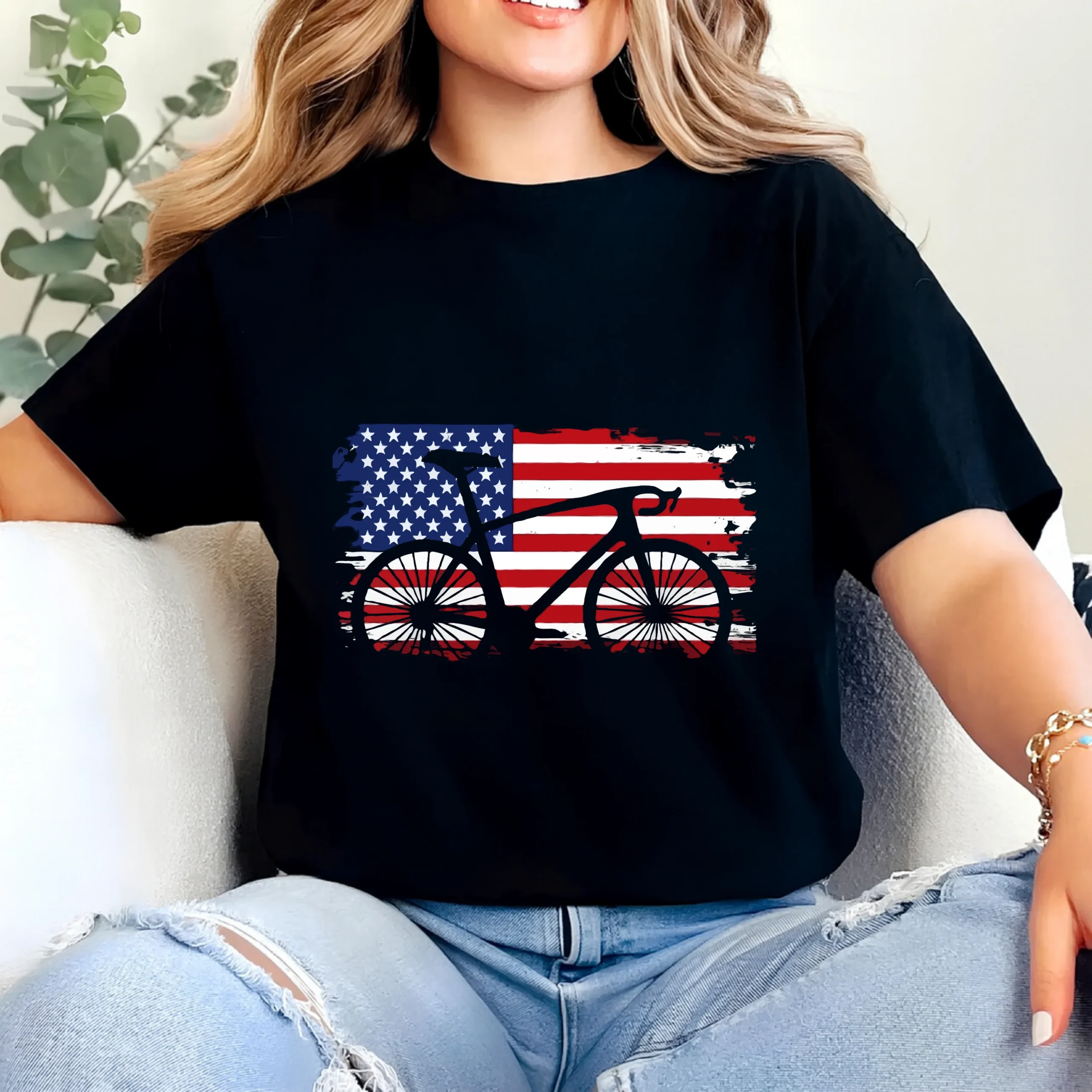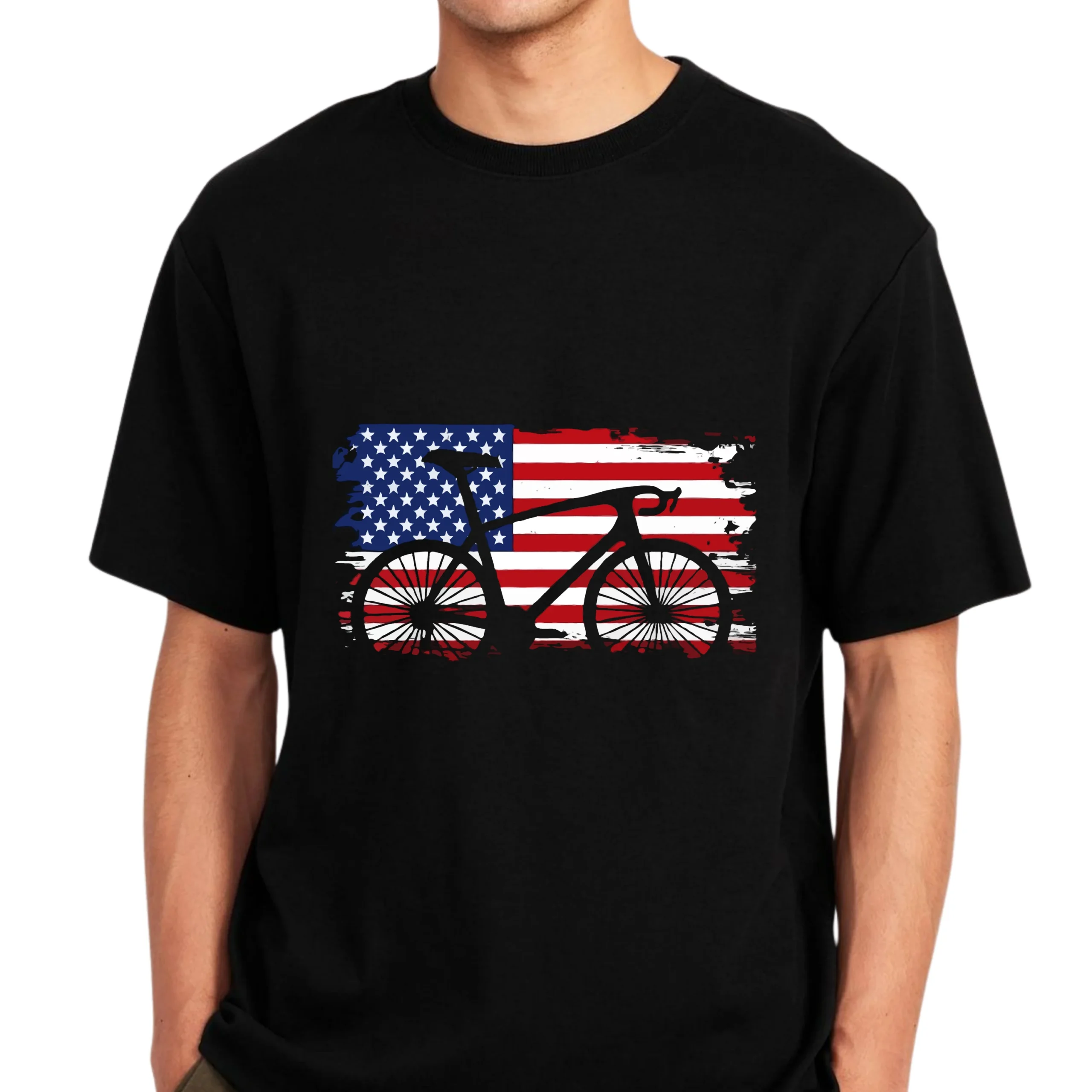 American Flag Bicycle T-Shirt Patriotic Cycling Shirt for Bike Lovers