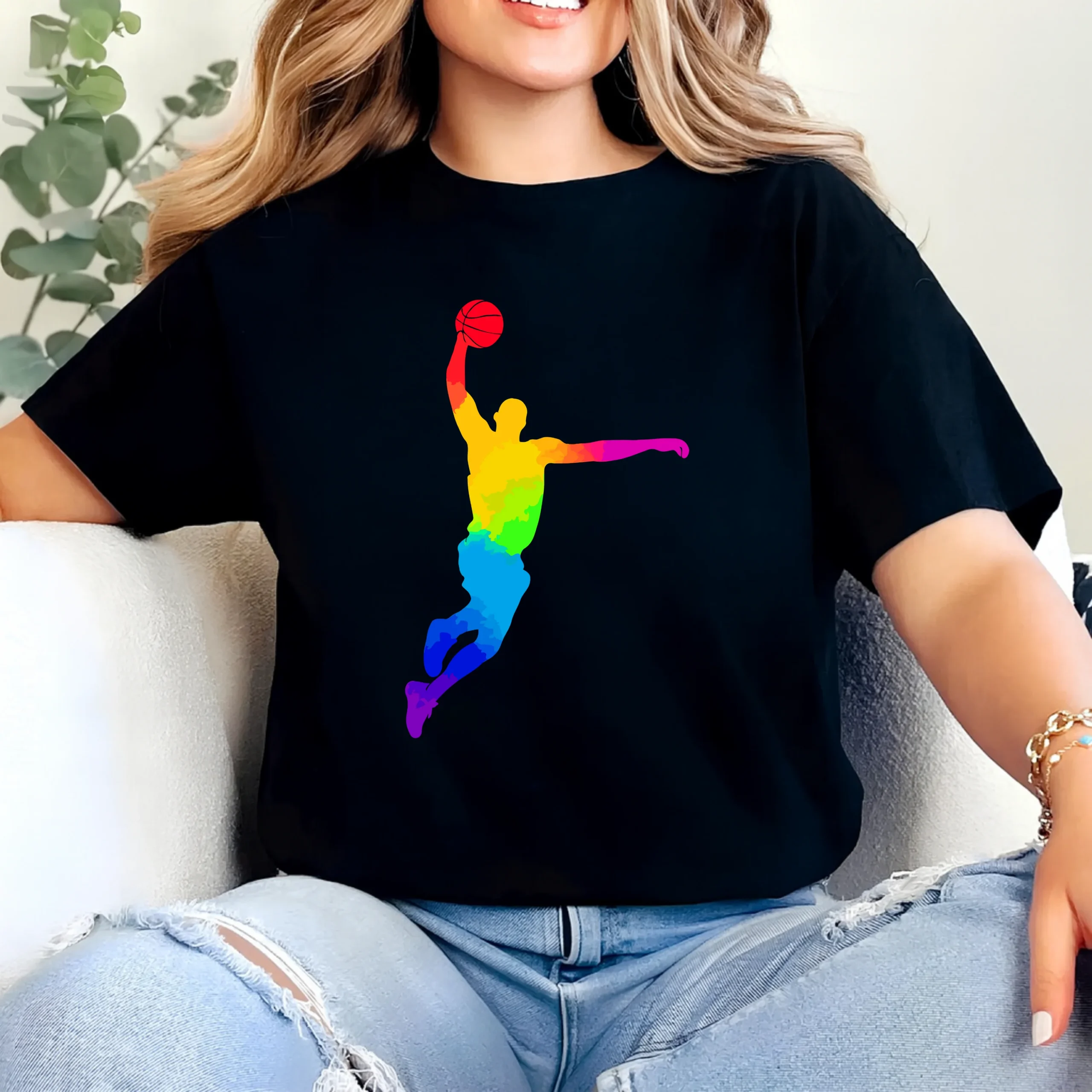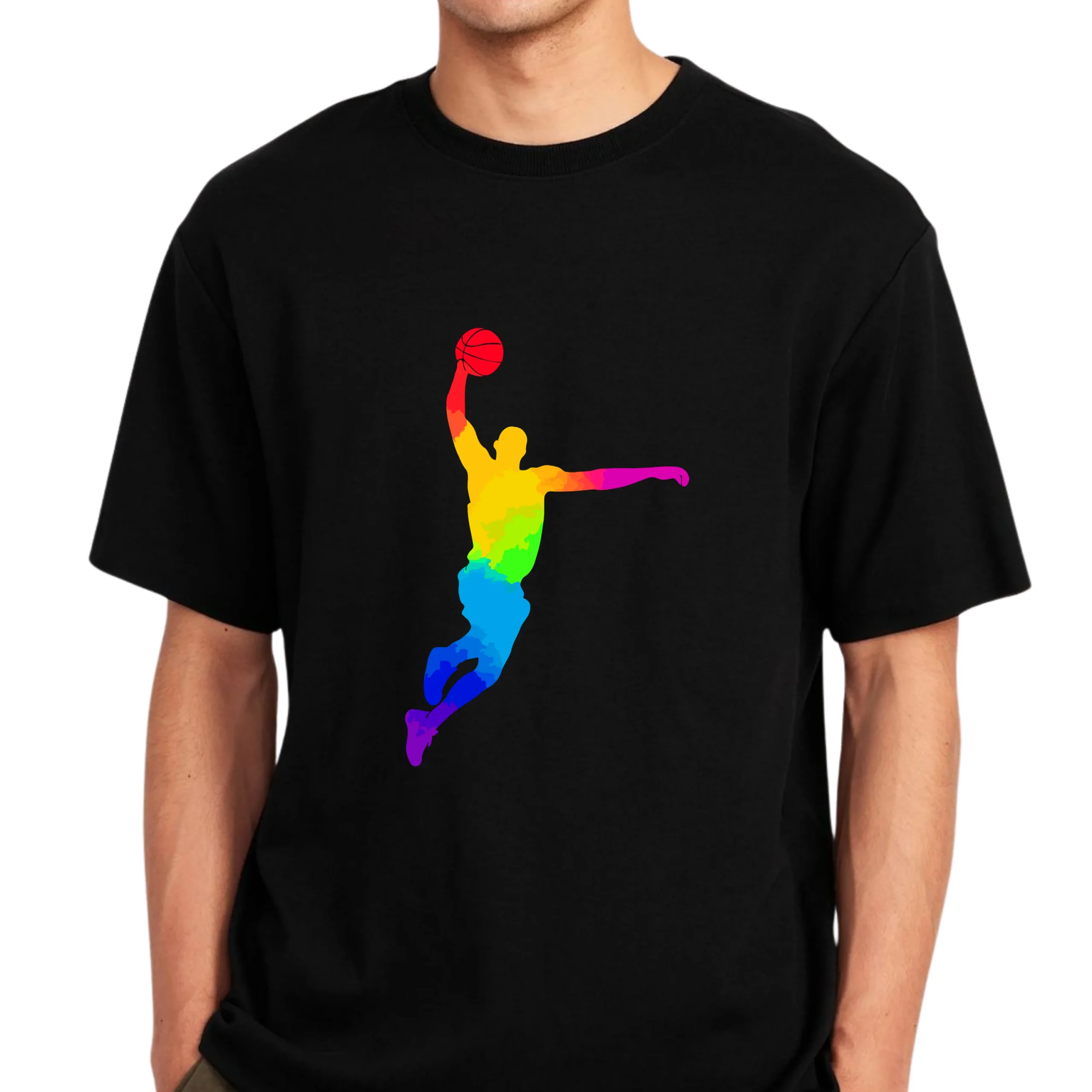 🏀🌈 Rainbow Dunk Basketball – Colorful Basketball Player T-Shirt