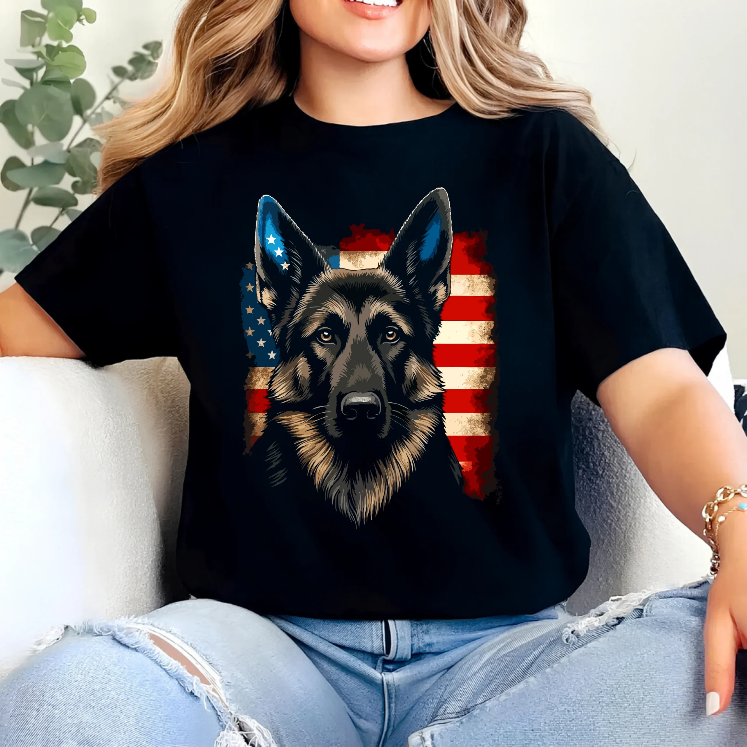 100% premium cotton. Strong. Loyal. Patriotic. 🇺🇸A powerful German Shepherd design honoring loyalty and American pride.