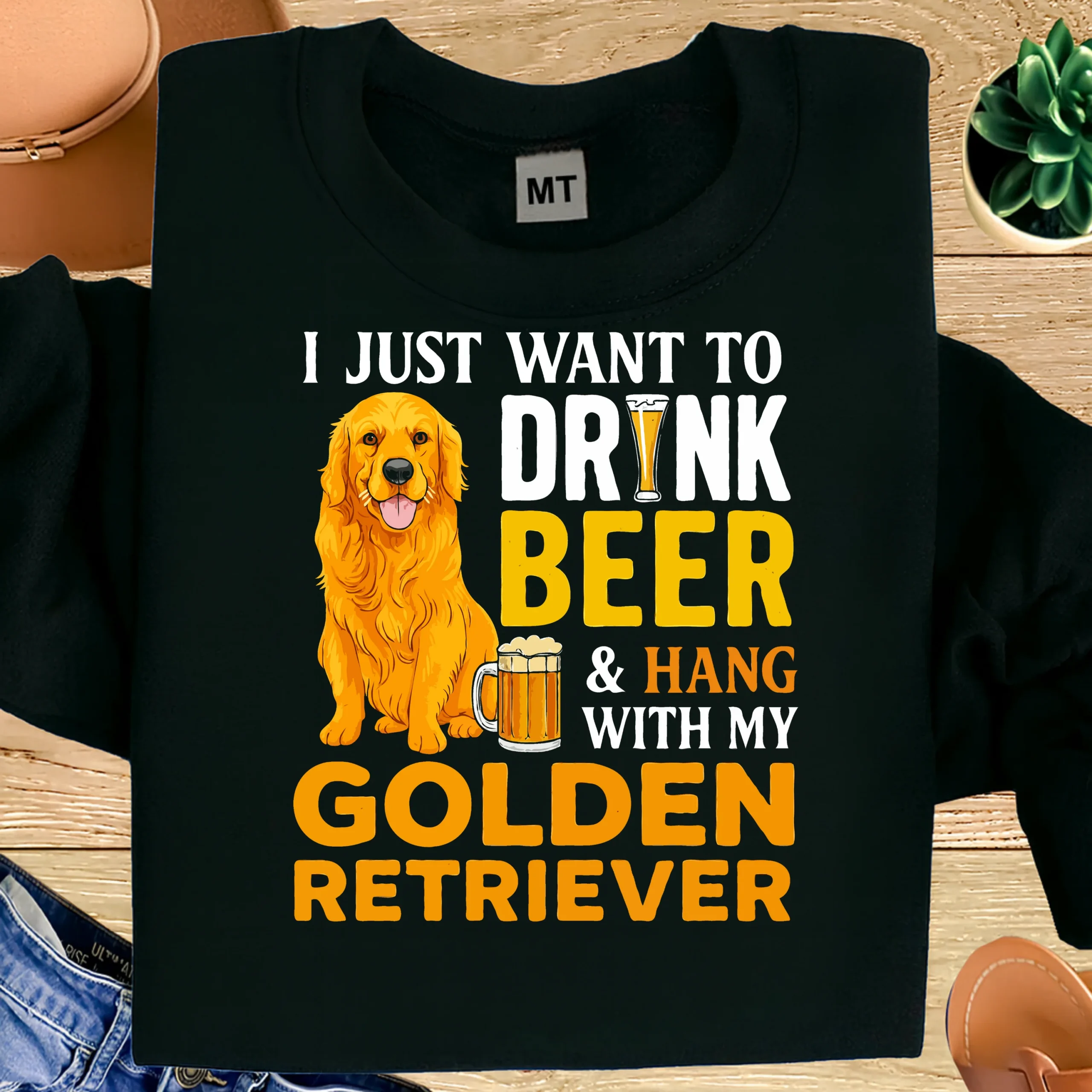 This funny golden retriever t-shirt is made for dog lovers who know that beer tastes better with their best furry friend. Featuring a cheerful golden retriever, beer mugs, and bold easy-to-read typography, this design delivers humor, comfort, and personality in one standout shirt.
