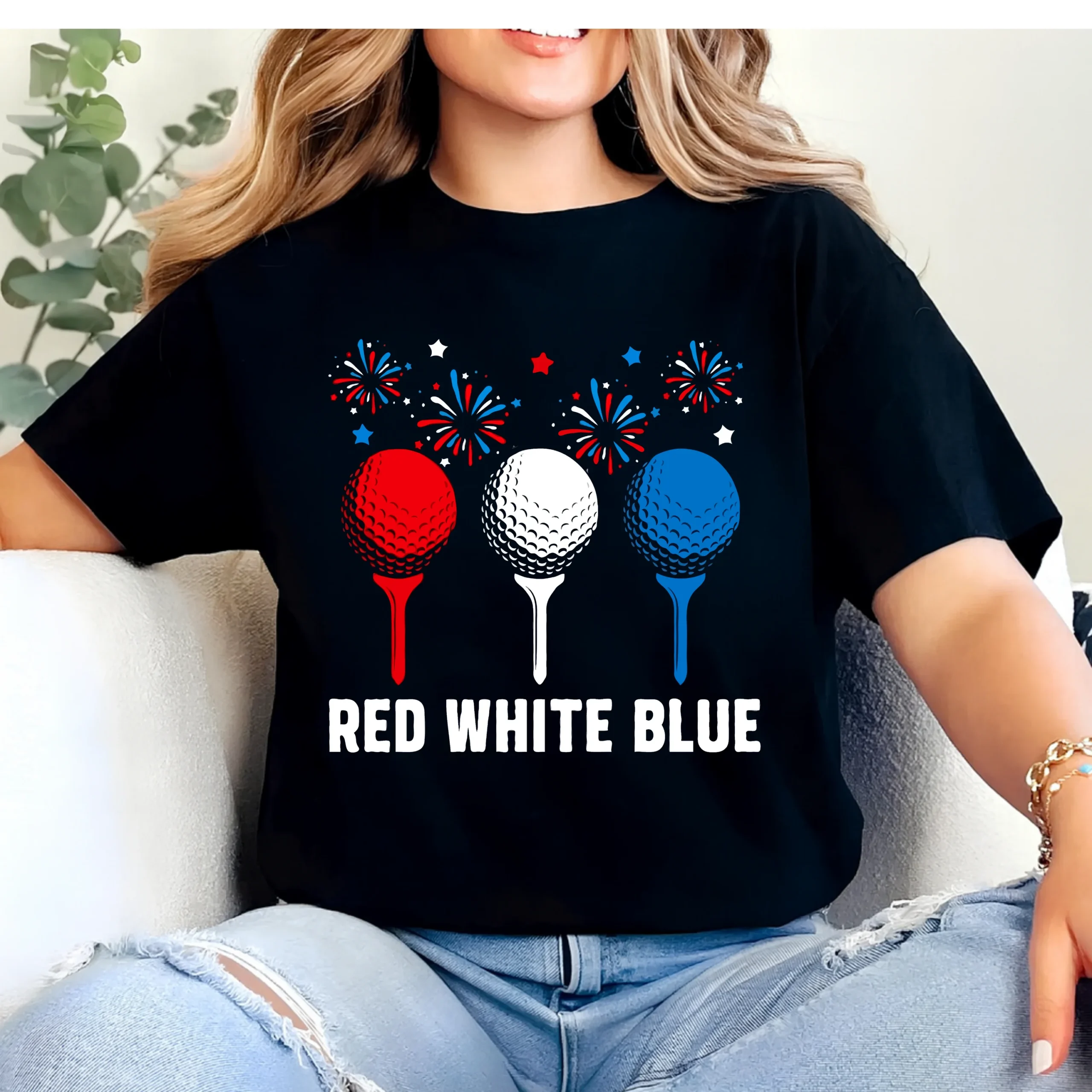 Celebrate your passion for disc golf and patriotic pride with this Red, White, and Blue Disc Golf Shirt. Featuring three disc golf tees styled in classic red, white, and blue with festive fireworks above, this design is perfect for Independence Day rounds, tournaments, and everyday wear.