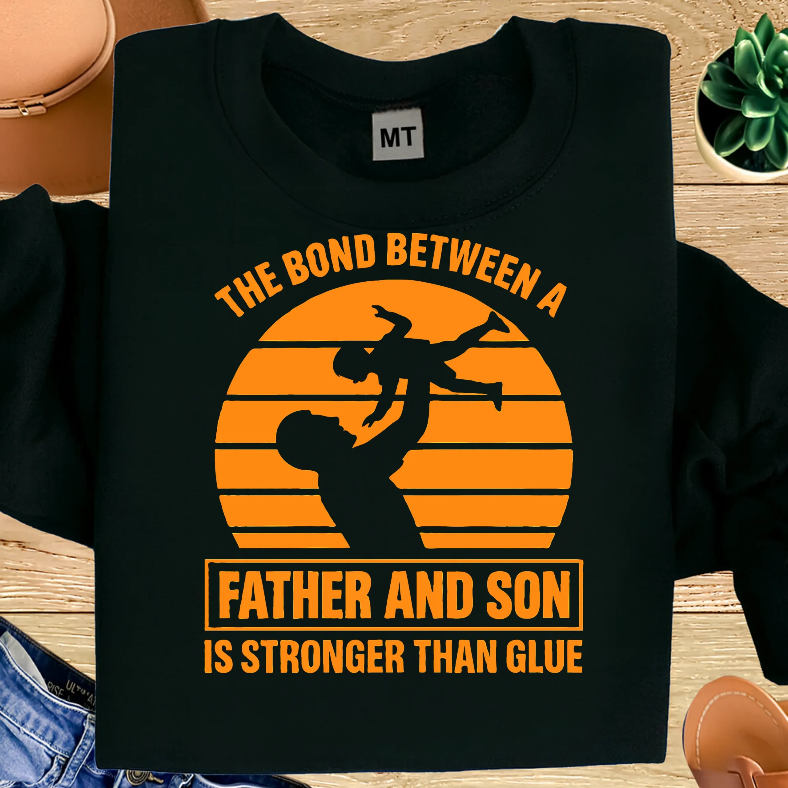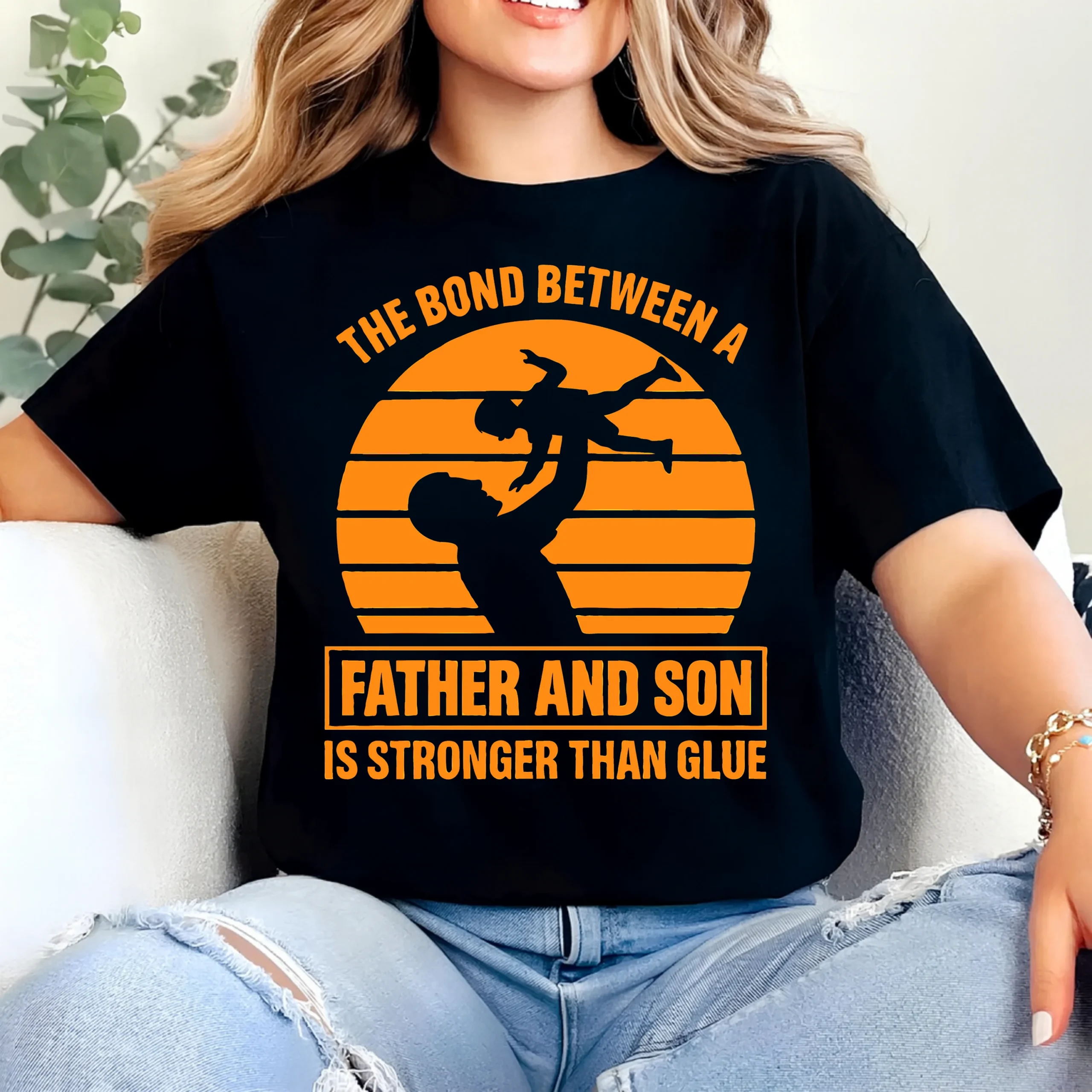 Celebrate the powerful and timeless relationship between a father and his son with this meaningful “The Bond Between a Father and Son Is Stronger Than Glue” printed cotton T-shirt. Featuring an emotional father-and-son silhouette design, this T-shirt beautifully represents love, strength, and lifelong connection.