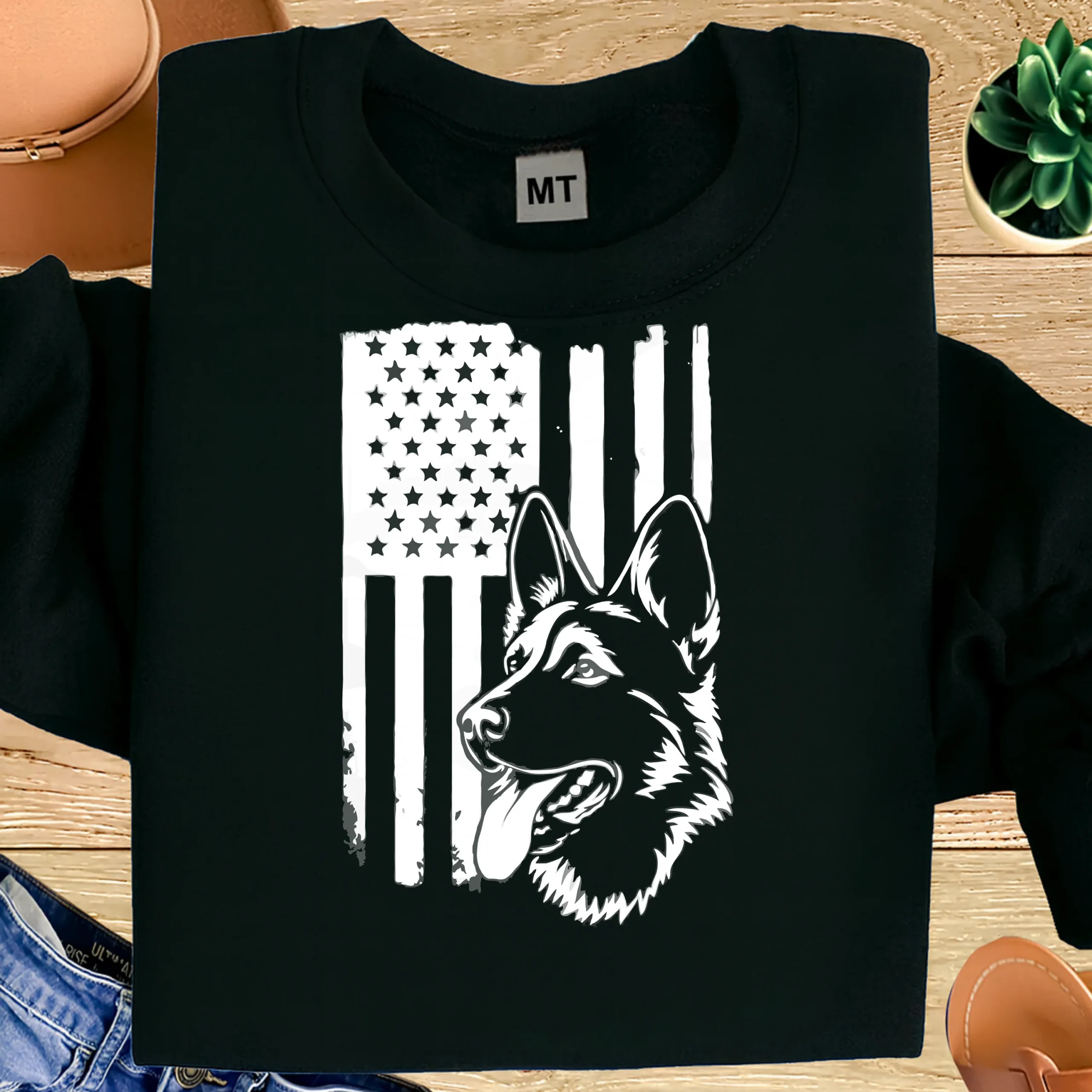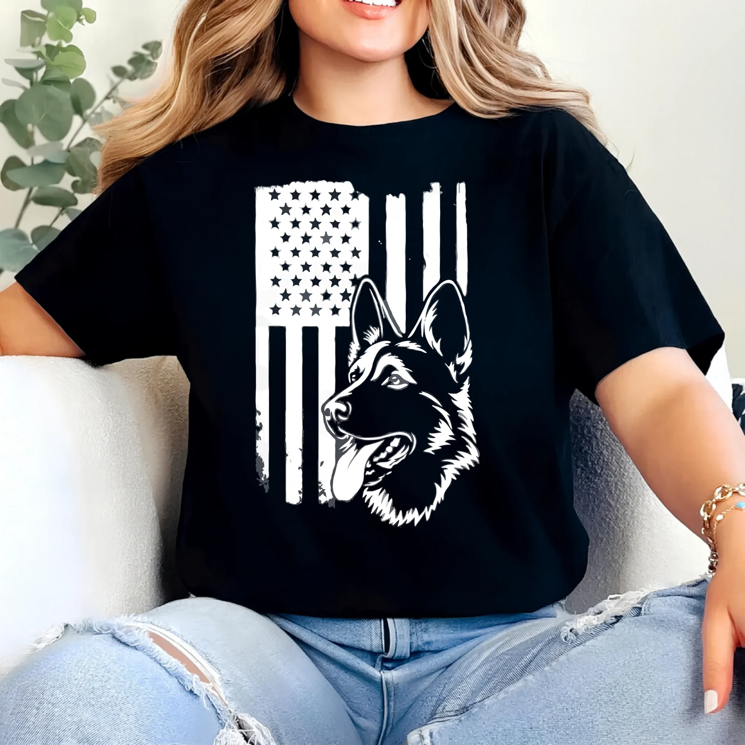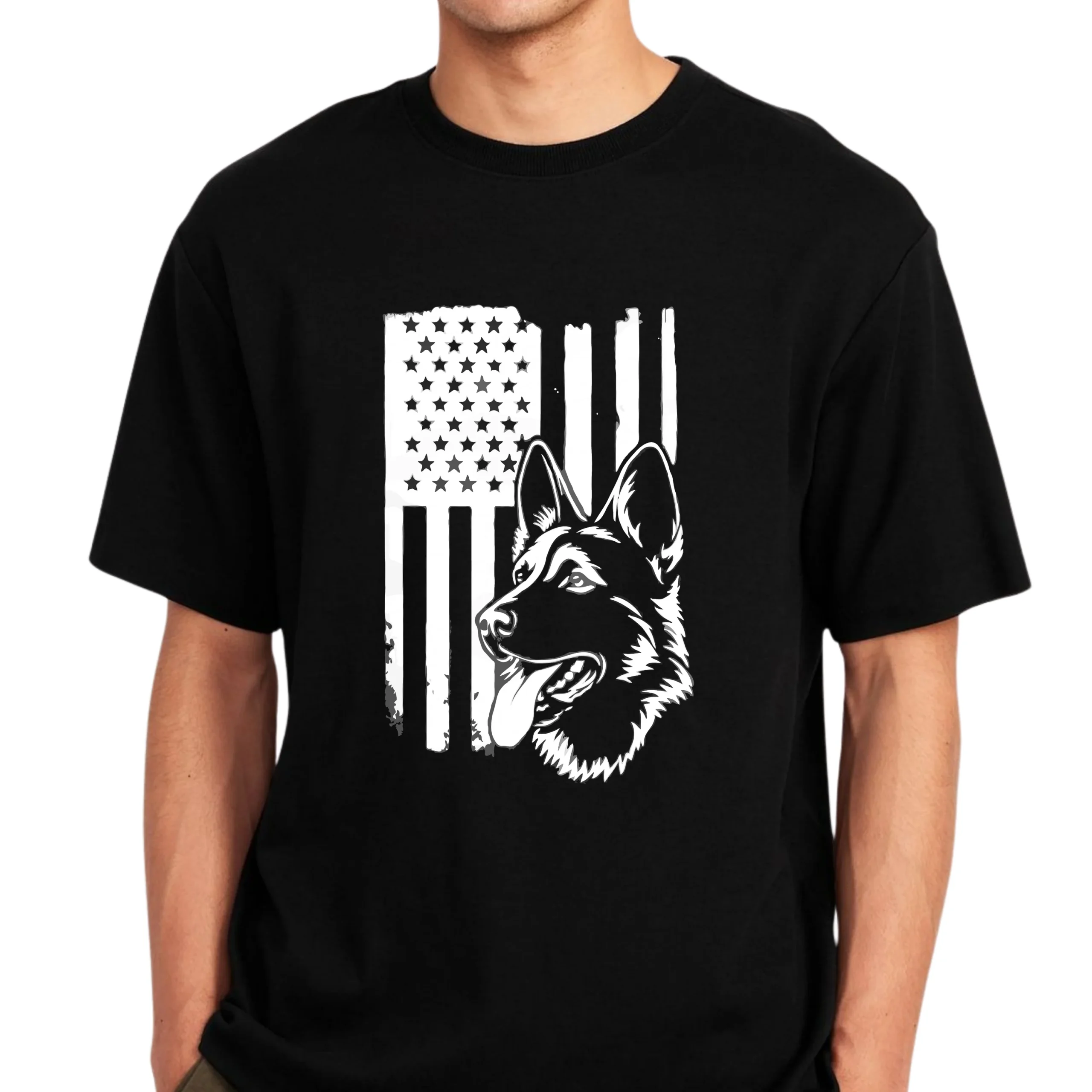 The clean monochrome style makes it bold, timeless, and easy to wear with any outfit. Whether you’re a dog owner, military supporter, veteran family member, or simply proud to be American—this shirt speaks for you.