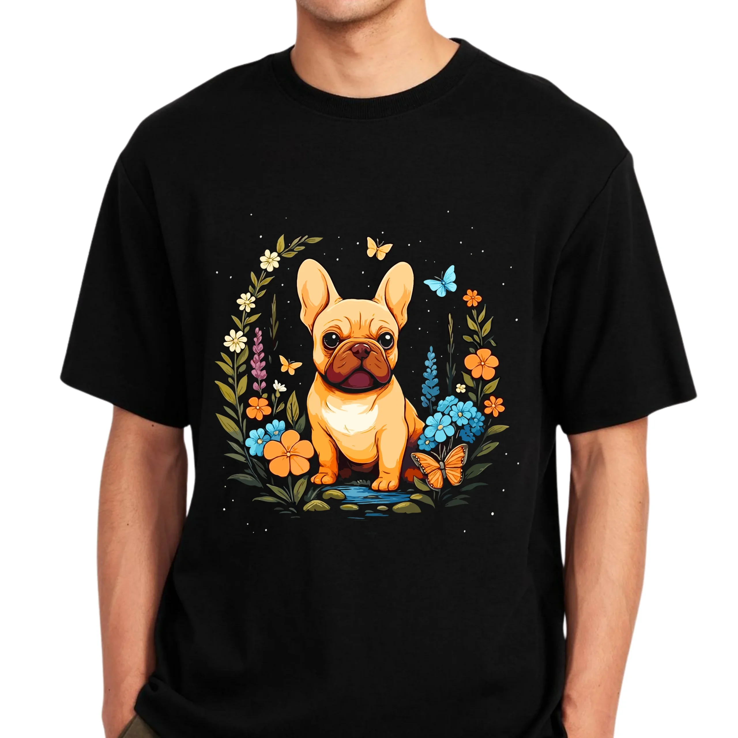 Printed on premium soft cotton, this T-shirt offers exceptional comfort while showcasing eye-catching artwork that pops against the black fabric. Whether you’re heading out, relaxing, or showing off your Frenchie pride, this tee makes a statement everywhere you go.