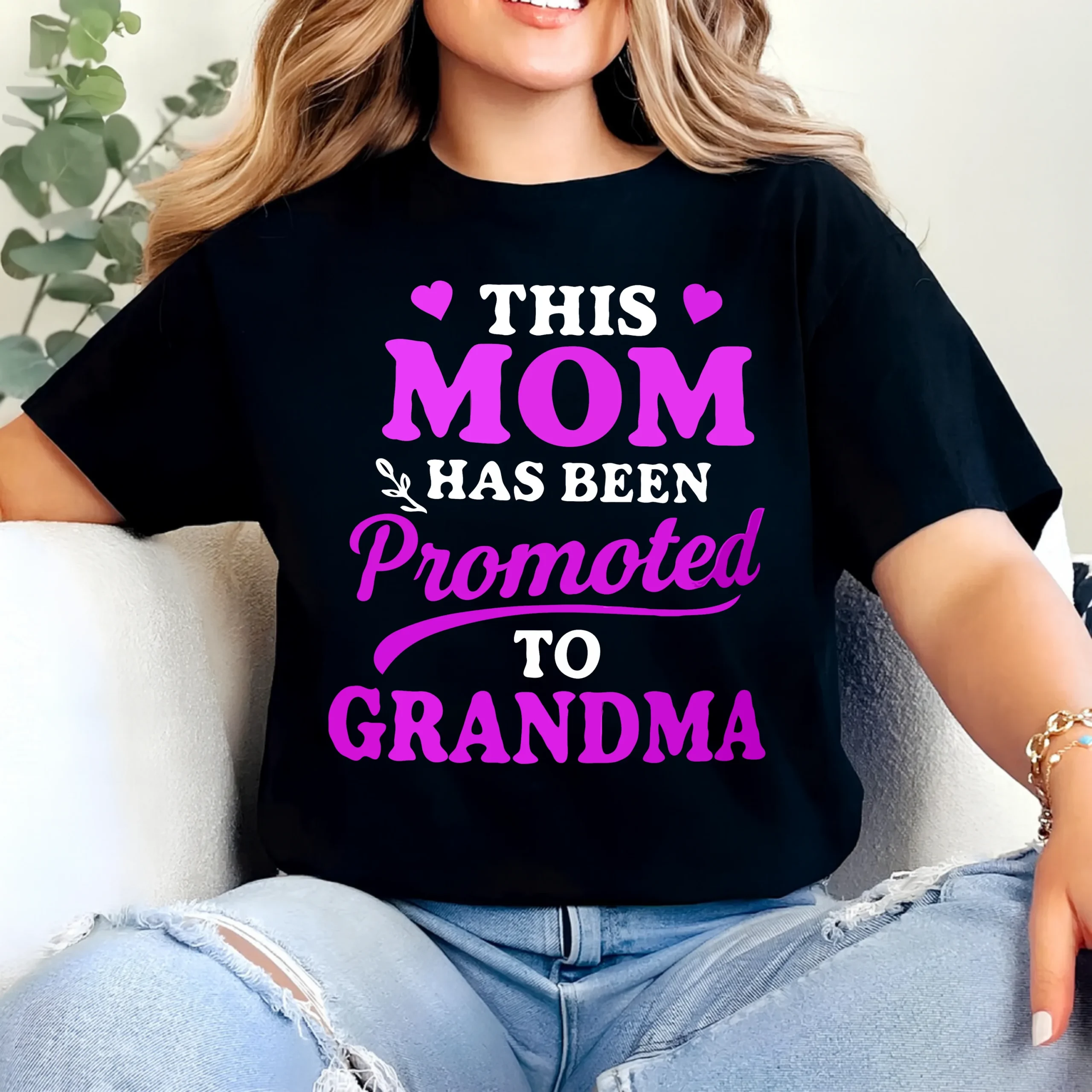 Celebrate one of life’s most exciting milestones with this adorable “This Mom Has Been Promoted to Grandma” Shirt.