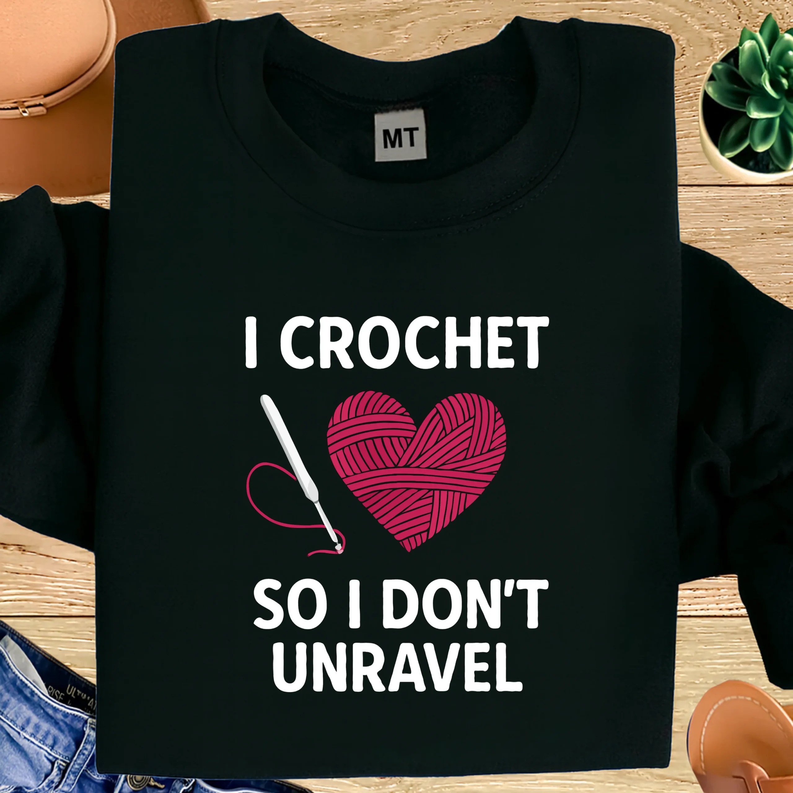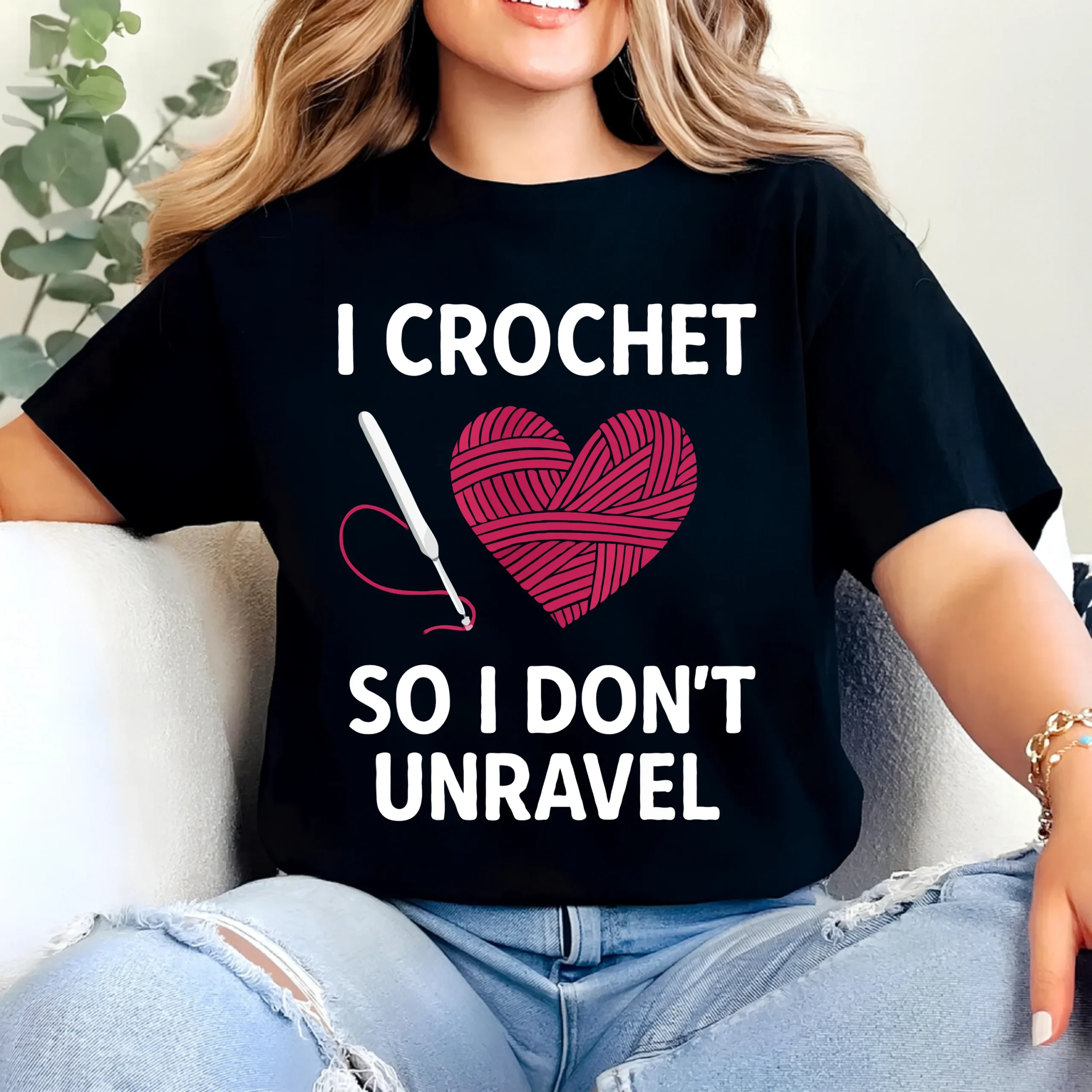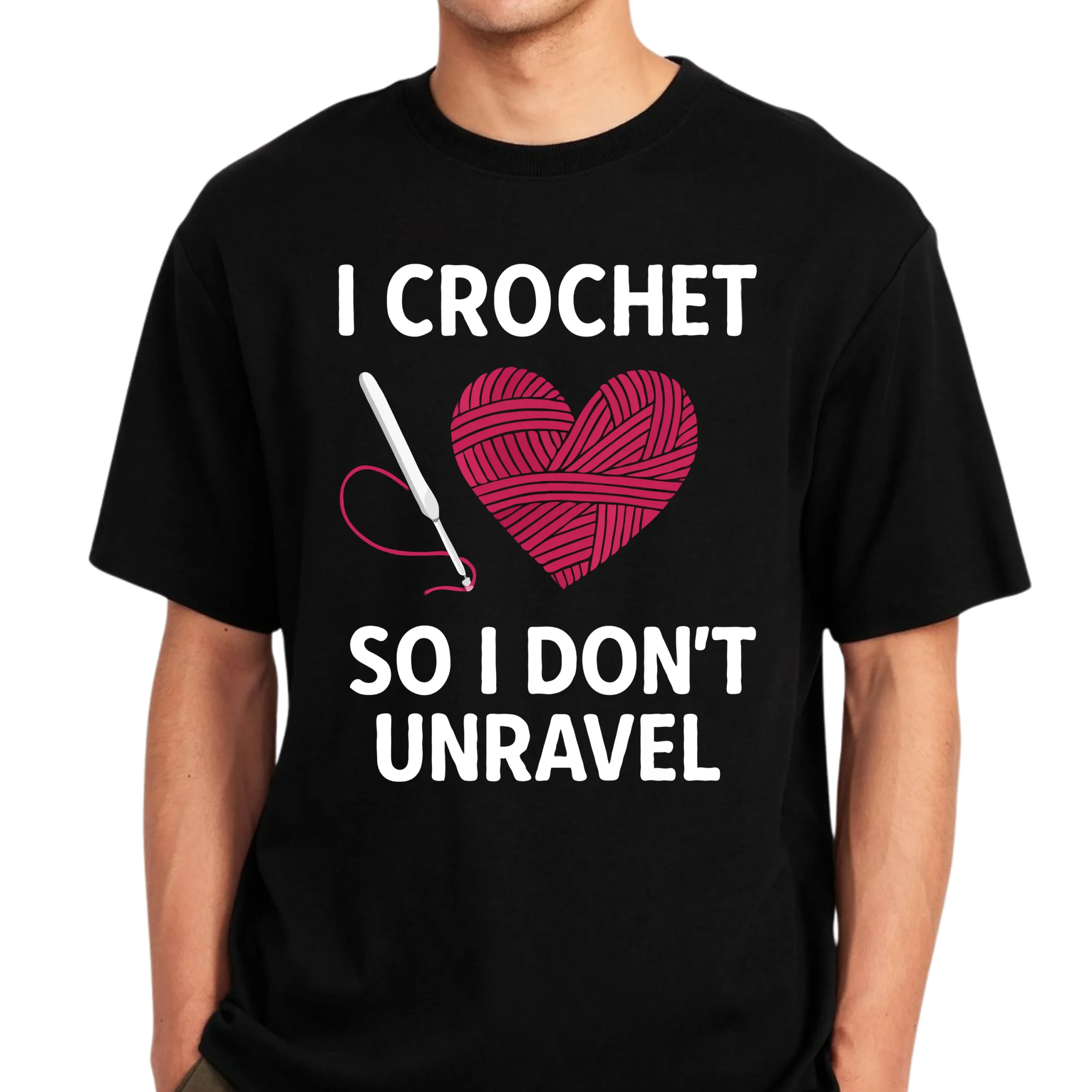 Show your love for yarn and self-care with the “I Crochet So I Don’t Unravel” T-Shirt. Featuring a beautiful heart made of yarn and a crochet hook, this design perfectly captures how crocheting keeps life stitched together.