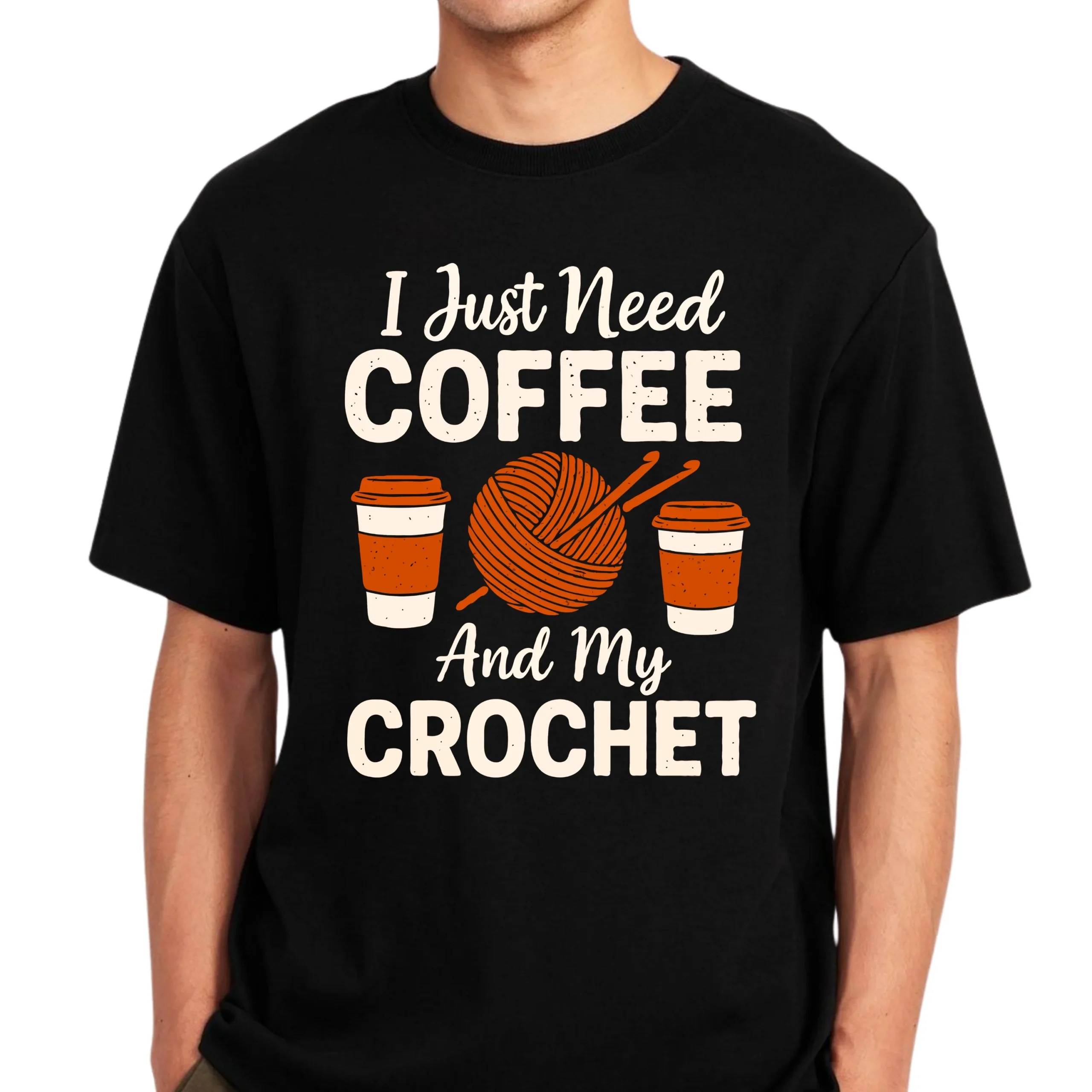 I Just Need Coffee And My Crochet – Crochet Coffee Lover T-Shirt