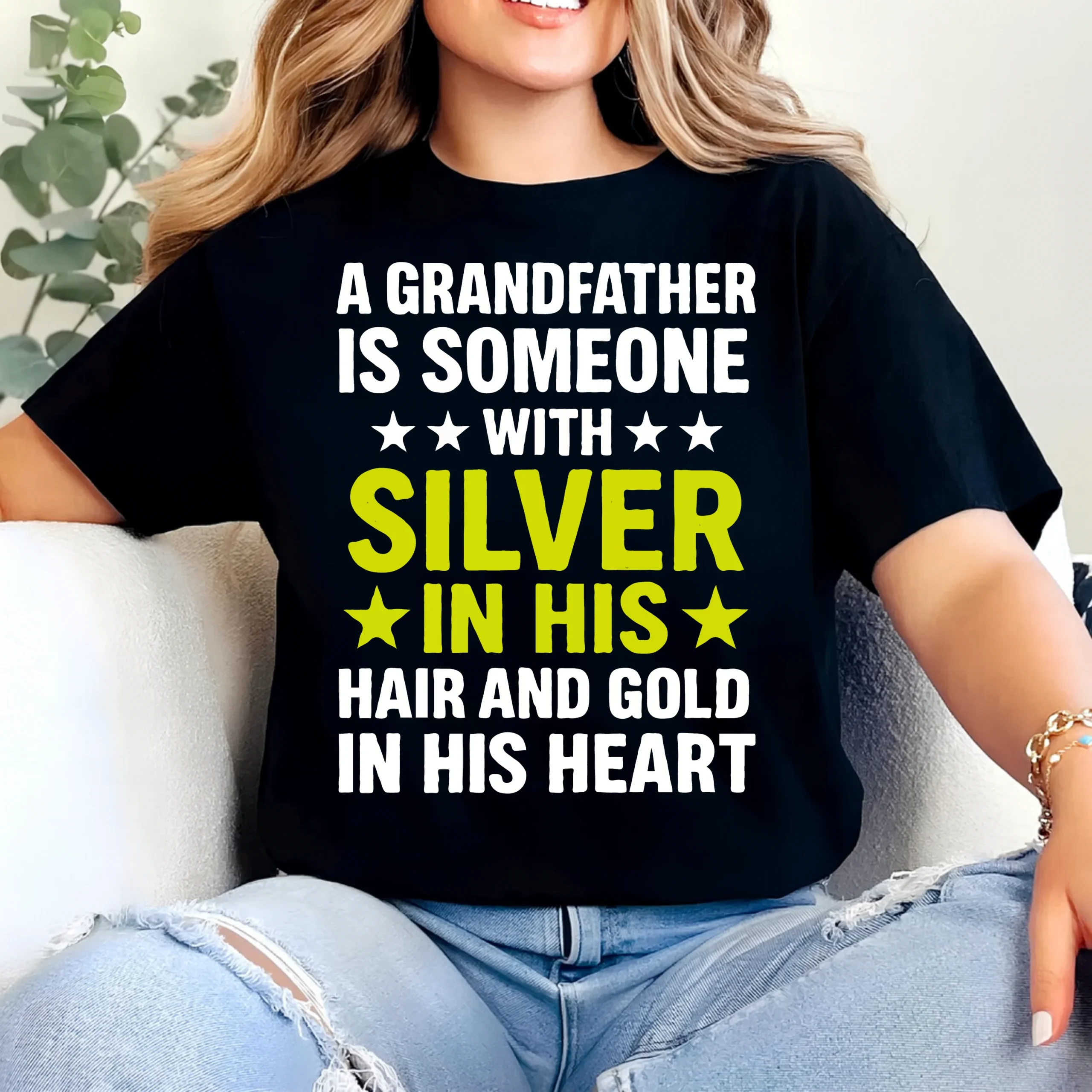 Celebrate the love, wisdom, and kindness of a grandfather with this timeless “Silver in His Hair and Gold in His Heart” Shirt.