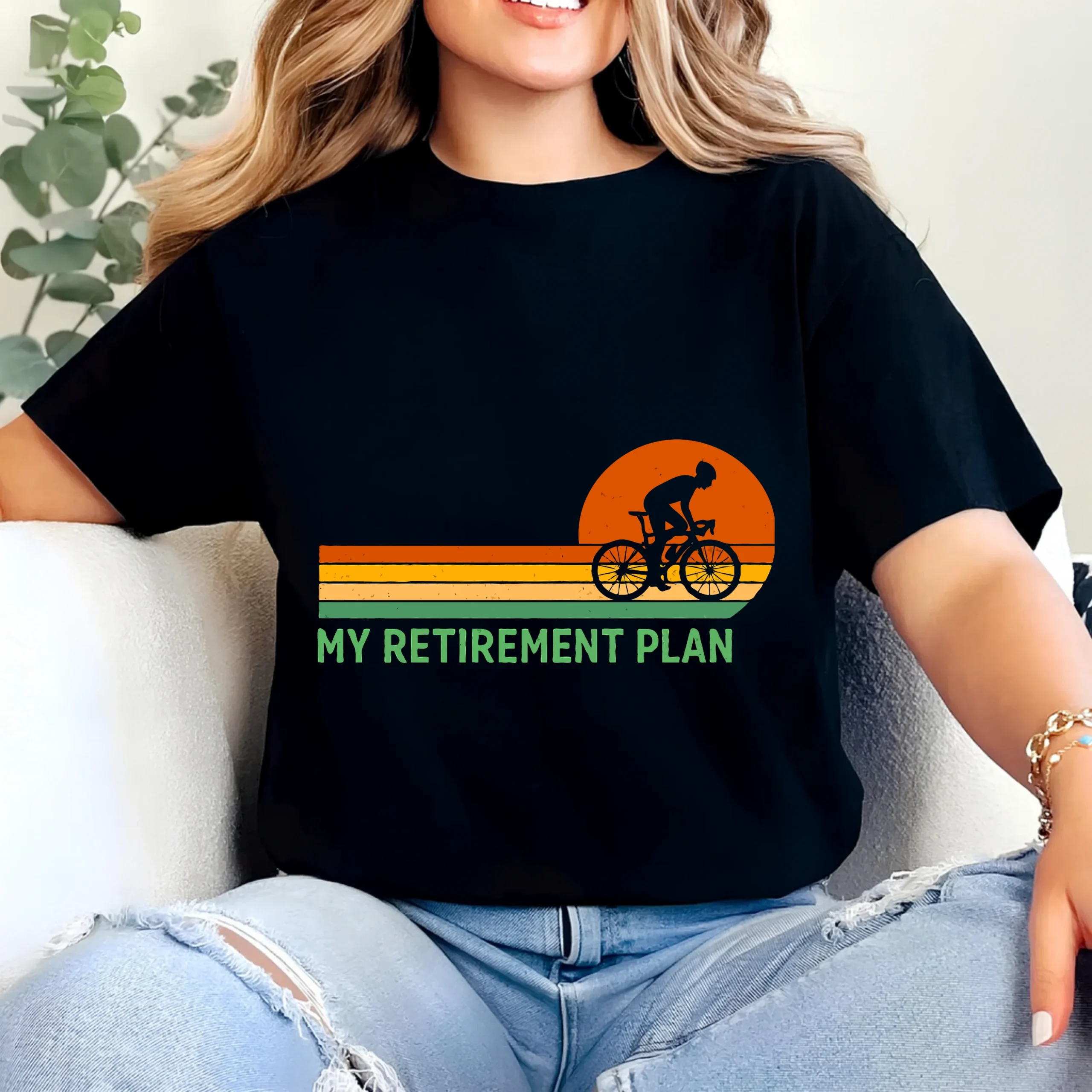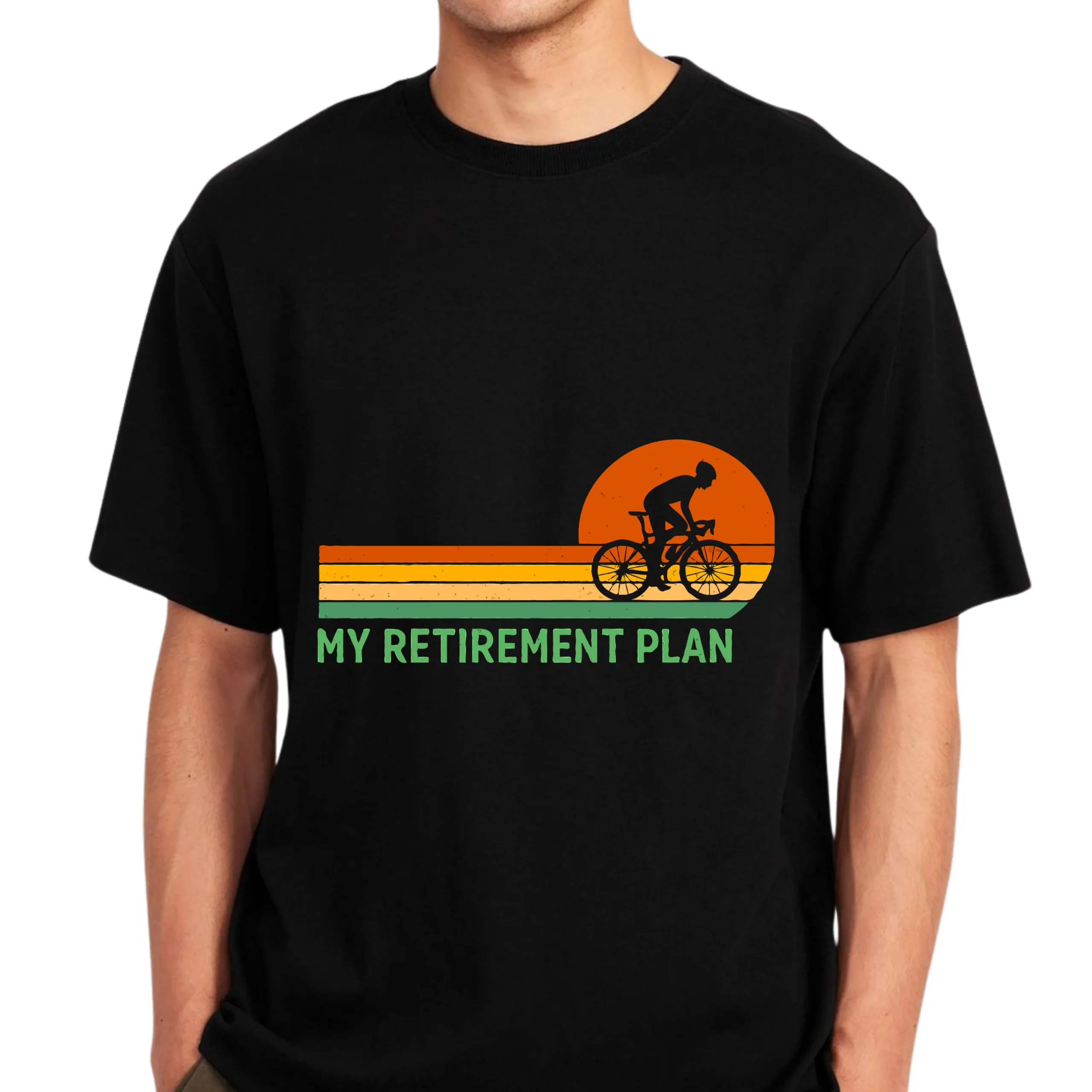 For true cyclists, retirement doesn’t mean slowing down—it means more riding. This “My Retirement Plan” Cycling T-Shirt features a bold cyclist silhouette riding into a vintage sunset, perfectly capturing the dream of lifelong cycling.