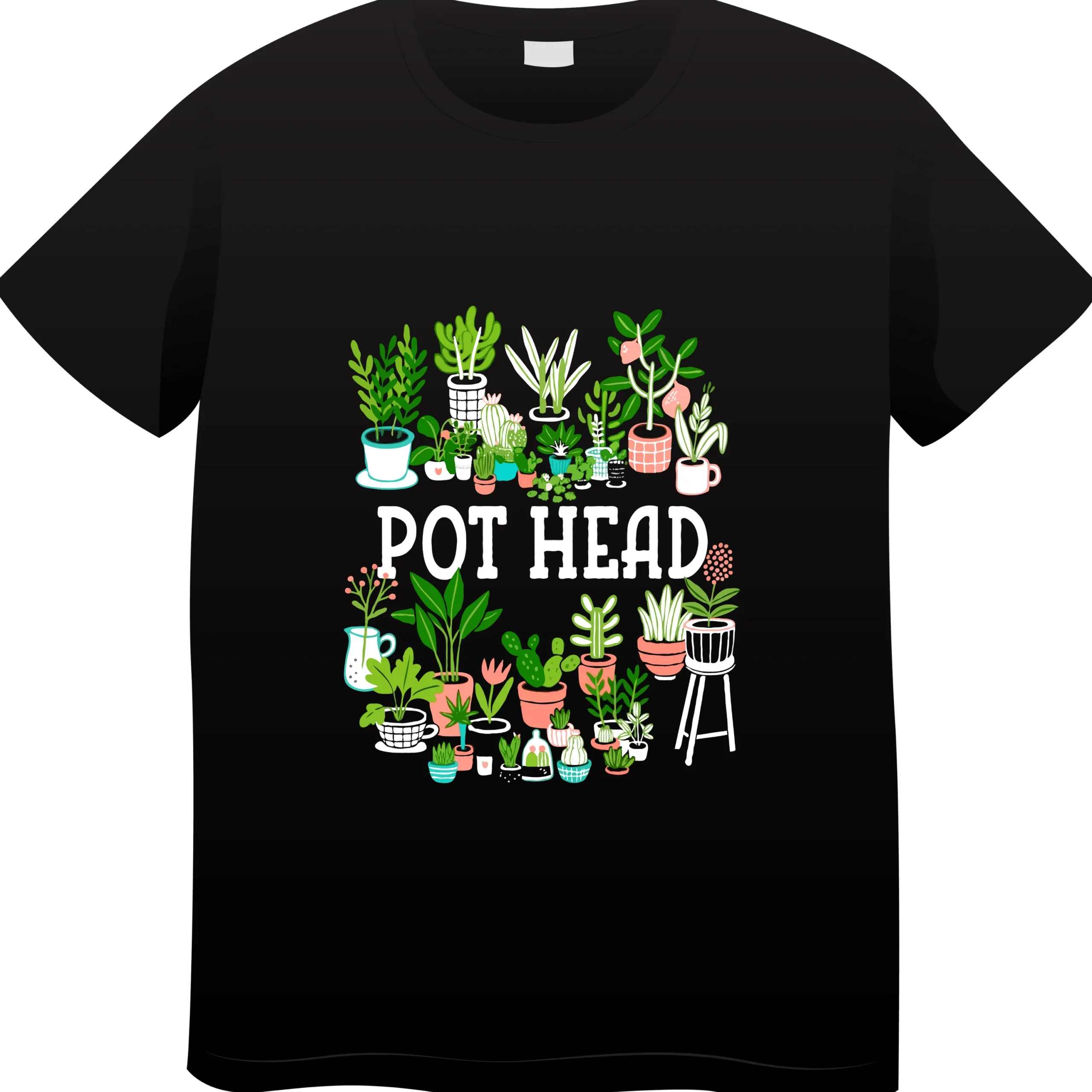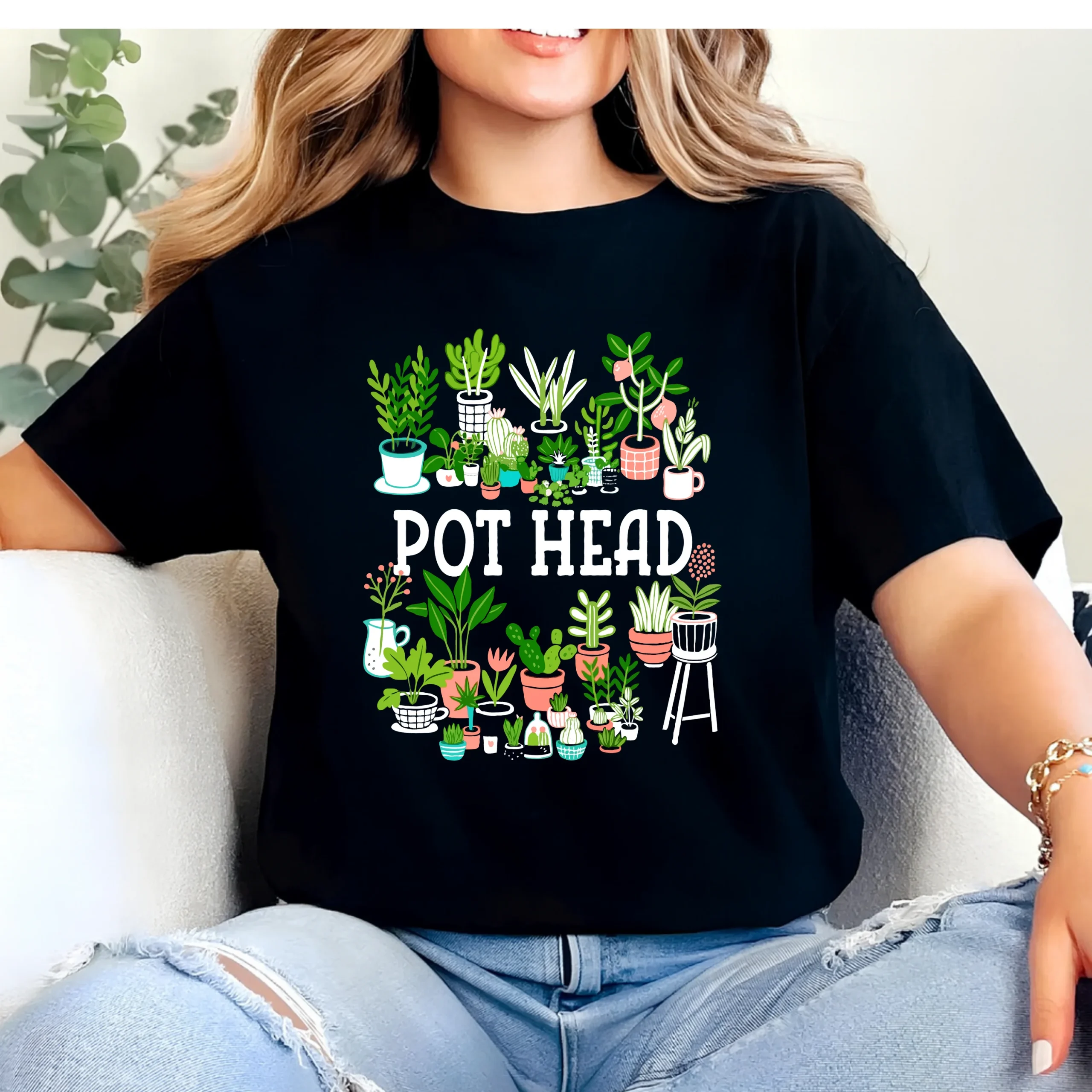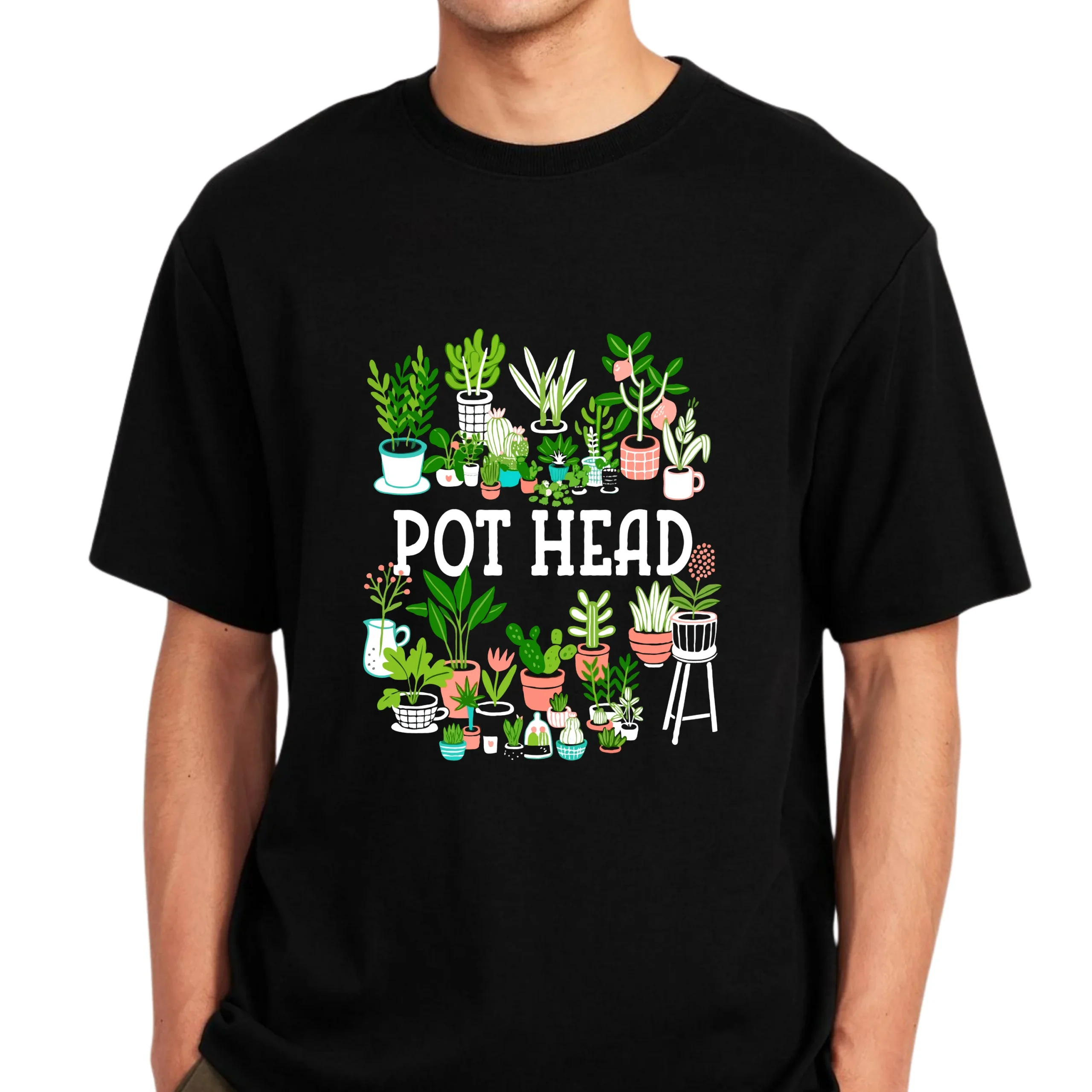 Show off your plant obsession with this fun and stylish “Pot Head” T-shirt. Featuring a playful design filled with colorful potted plants and greenery, this shirt is a perfect match for anyone who proudly loves their houseplants a little too much.