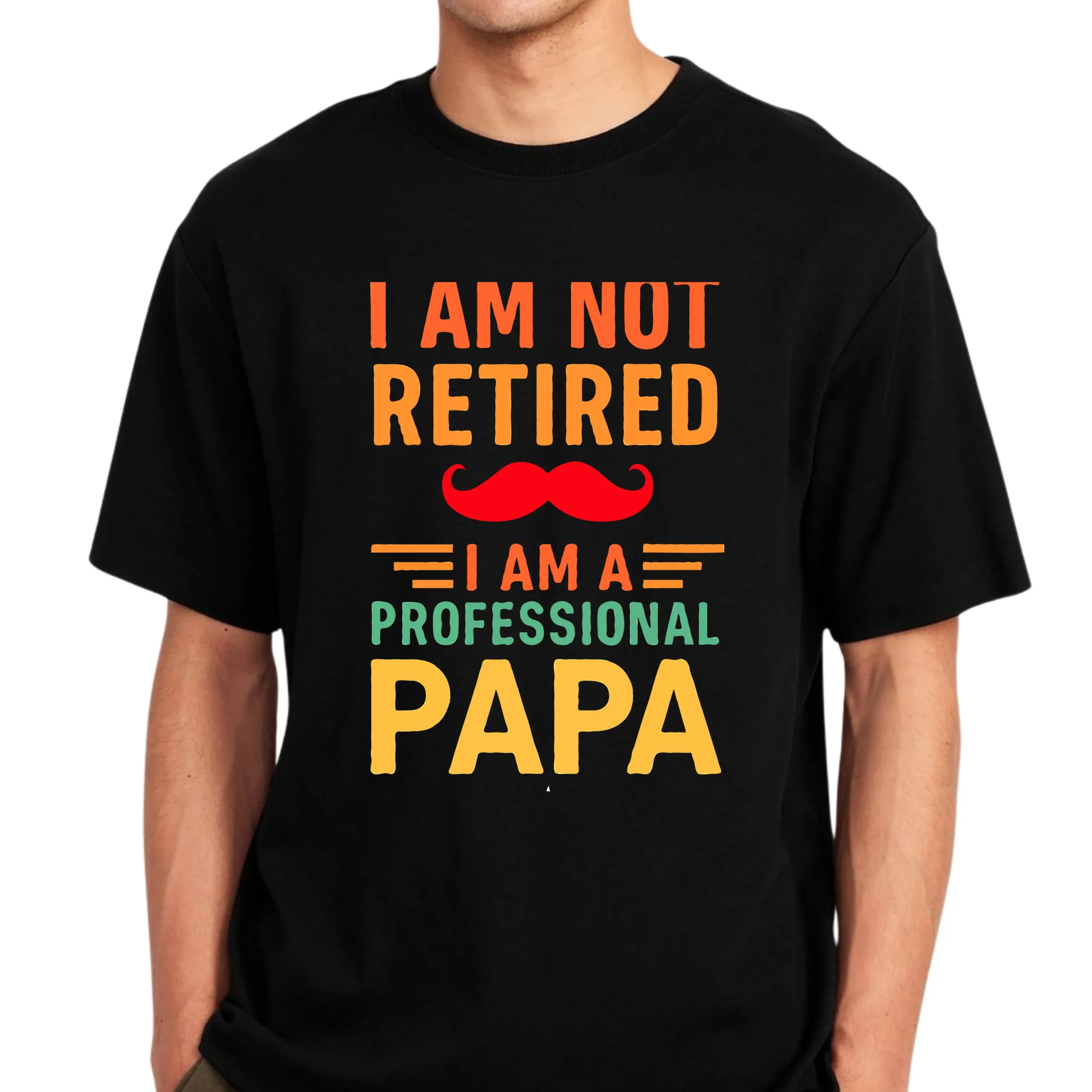 Celebrate fatherhood with humor and style with this “I Am Not Retired, I Am a Professional Papa” printed cotton T-shirt. Designed for proud dads and papas who take their role seriously (and humorously), this funny quote T-shirt is perfect for everyday wear and special occasions.