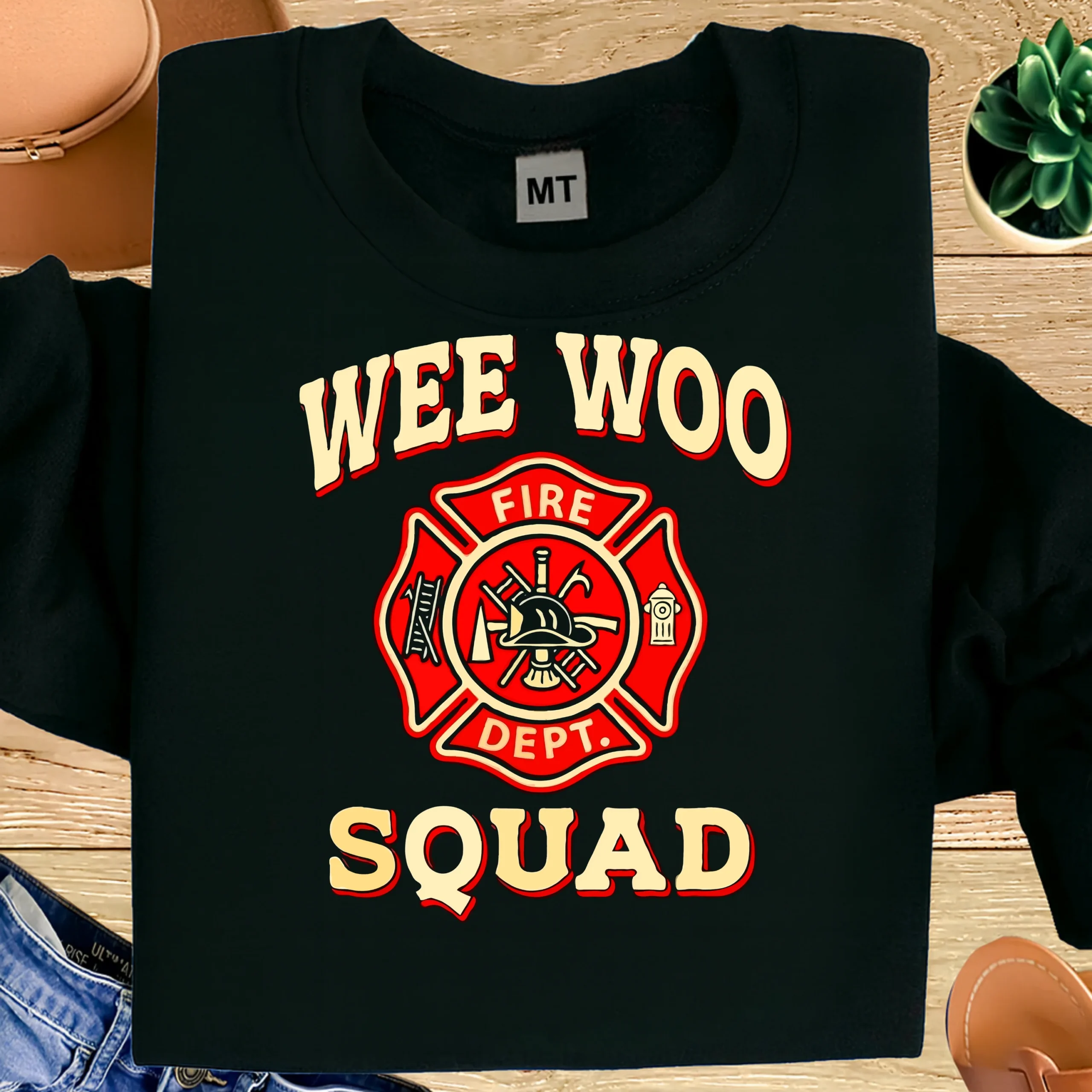Represent your firehouse with confidence in the Wee Woo Squad Firefighter T-Shirt. Featuring a bold fire department emblem design and the iconic “Wee Woo Squad” text, this shirt celebrates firefighter pride, brotherhood, and first-responder culture.